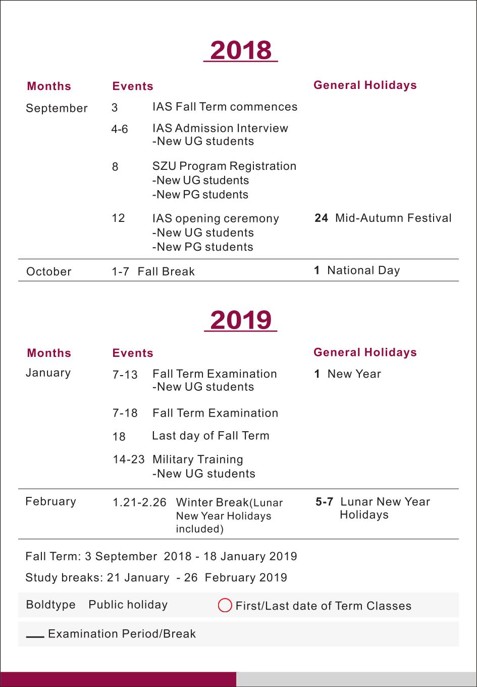 Study Breaks: January 21, 2019-February 26, 2019 (Notes: 2018 New UG Students: January 24, 2019- February 26, 2019)