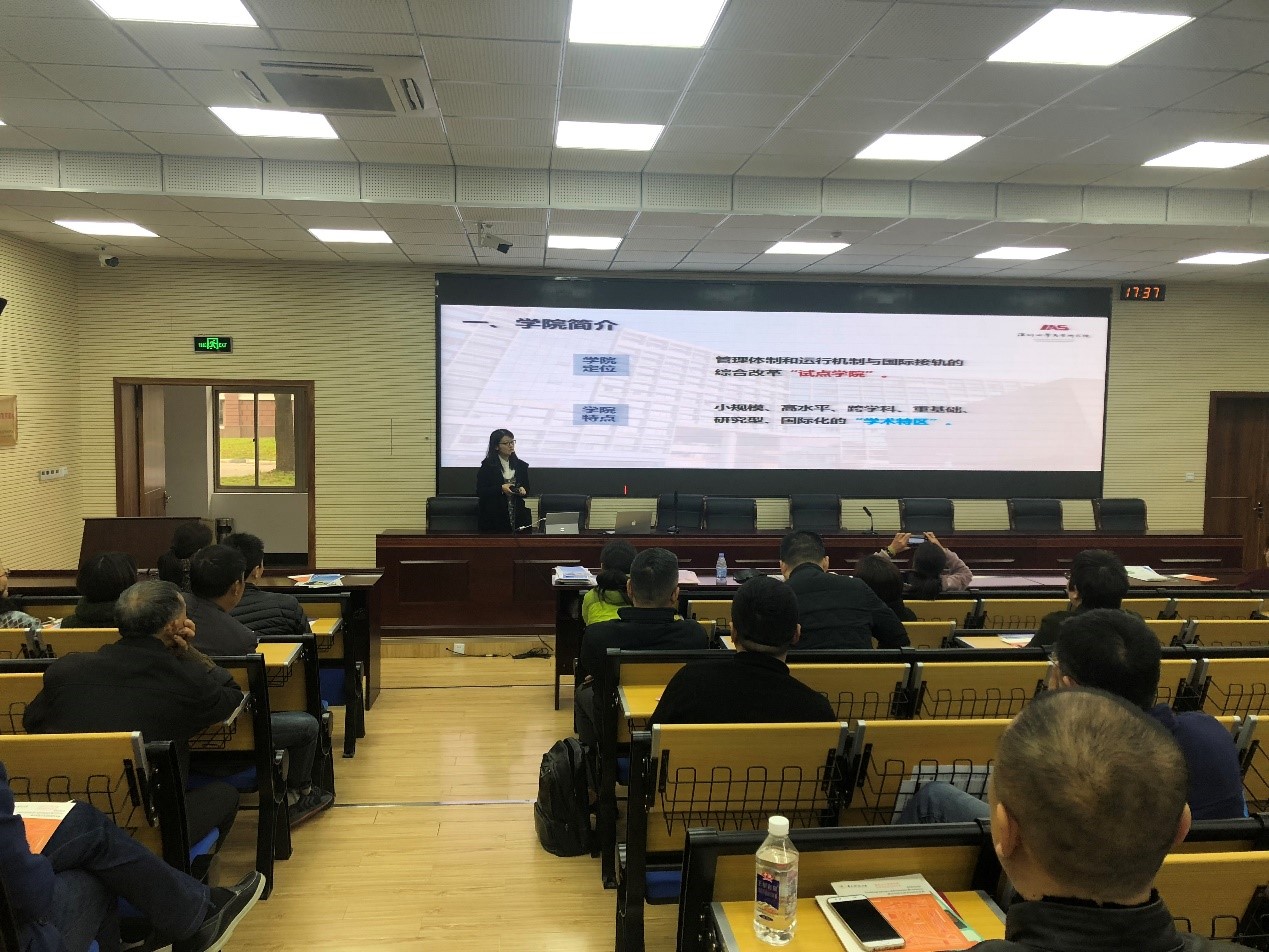 Headed by Director Zhijun, the delegation introduced SZU and IAS by PPT and publicity video, from the faculty, scientific research level, international exchange, training characteristics, admissions, top-notch innovative talent training plan and employment situation, etc. Nearly an hour's enrollment lecture aroused the active attention and interest of teachers, students and parents and WeChat groups established by IAS for head teachers and parents of the schools also achieved good publicity effect.