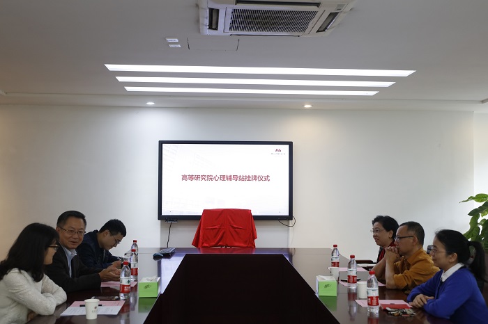 The Institute for Advanced Study (IAS) of Shenzhen University held an unveiling ceremony for the Psychological Counseling Station in Room 103 of Huiyuan Building at 15:30 pm on December 23, 2019. Professor Feng Chen, dean of the IAS, Doctor Yang Wei, deputy dean of the IAS, and Wenze Ma, deputy director of the Student Department of Shenzhen University, Hong Zhou, director of the Psychological Counseling Center, were invited to attend this ceremony and it was hosted by Doctor Yang Wei.