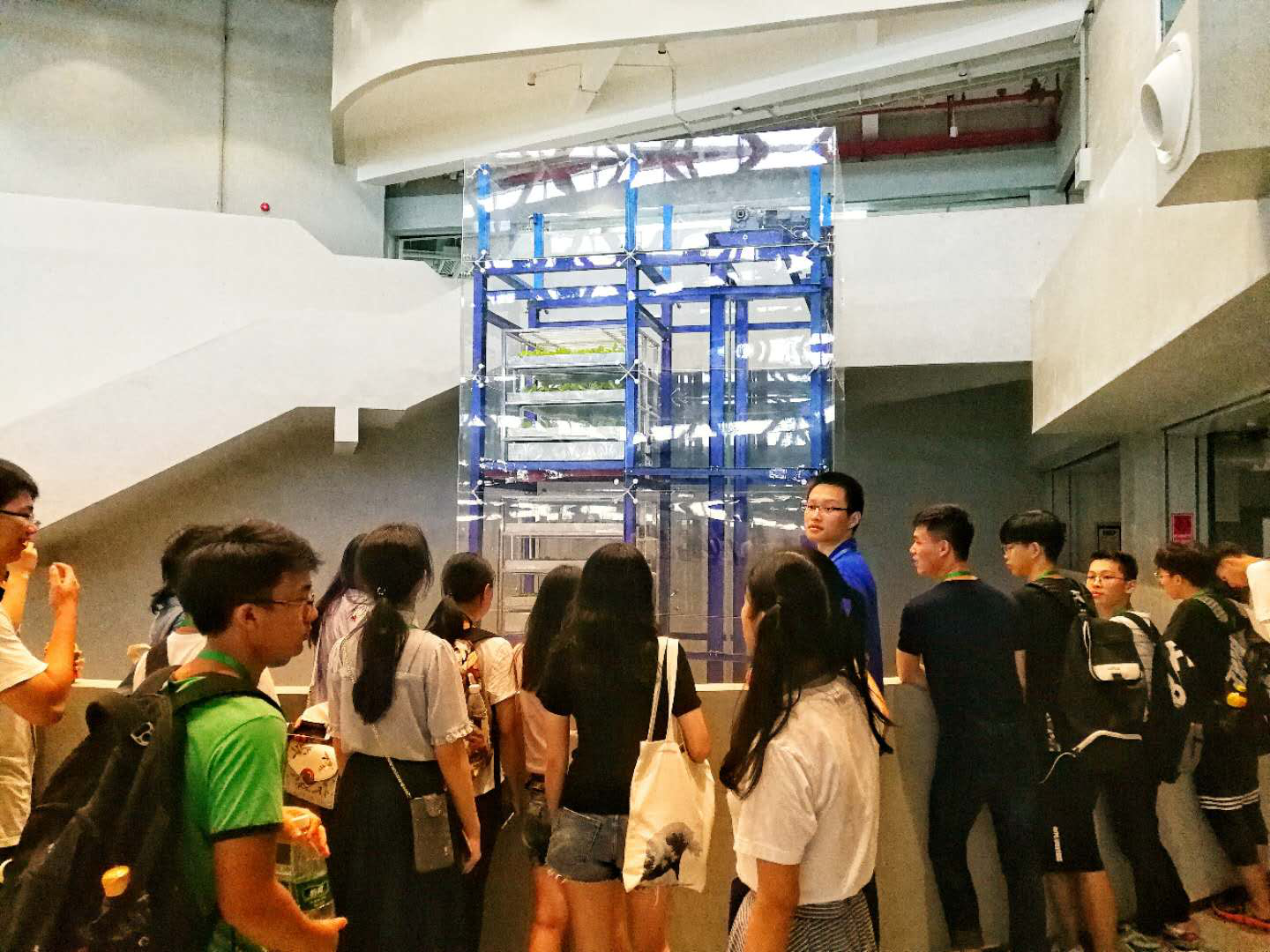 之后,同学们在老师带领下近距离参观和了解了立体农业示范箱、高通量基因测序房、超级计算房等,认识到了许多用于基因研究的先进技术。