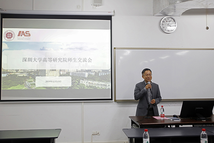 The 2019 teacher-student exchange meeting of the Institute for Advanced Study (IAS) of Shenzhen University (SZU) was held at L1-201, Zhili Building, Canghai Campus at 16:00 on December 13th. Mr. Jifeng Dai, the head of the united front department of the organization department at SZU, Professor Feng Chen, the dean of the IAS, Dr. Yang Wei, the deputy dean of the IAS, many full-time teachers from the college, and 60 freshmen participated in the exchange meeting and conducted a face-to-face talk in depth.