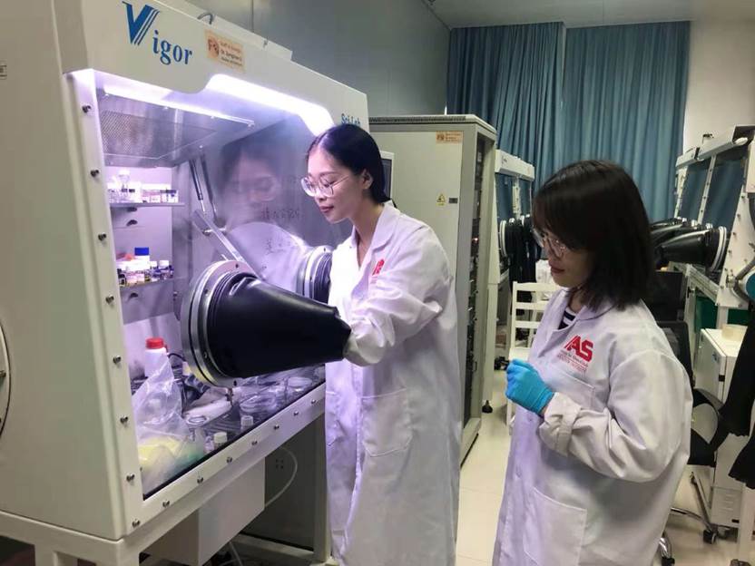 Figure 1 Zhu Xin is fabricatingthe device and Dr. Chen is instructing in lab.