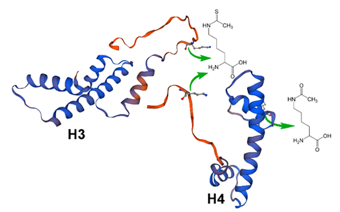 As we all know, Lysine acetylation is a reversible post-translational modification (PTM) vastly employed in many biological events, including regulating gene expression and dynamic transitions in chromatin remodeling. In this research, Prof. Xiong’s group has developed the first one-pot bio-orthogonal flexizyme system in which both acetyl-lysine (AcK) and non-hydrolysable thioacetyl-lysine (ThioAcK) were site-specifically incorporated into human histone H3 and H4 at different lysine positions in vitro, either individually or in pairs. In addition, the high accuracy of this system moving toward one-pot synthesis of desired histone variants is also reported. This paper is a further expansion of the previous work of the research group (Angew. Chem. Int. Ed. 2016, 55, 4083-4086).