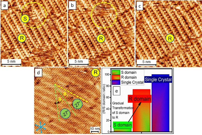 Fig 1. A scheme to show our method for preparing single crystal from selective nucleation and subsequent tailored growth of TPTC via STM.
