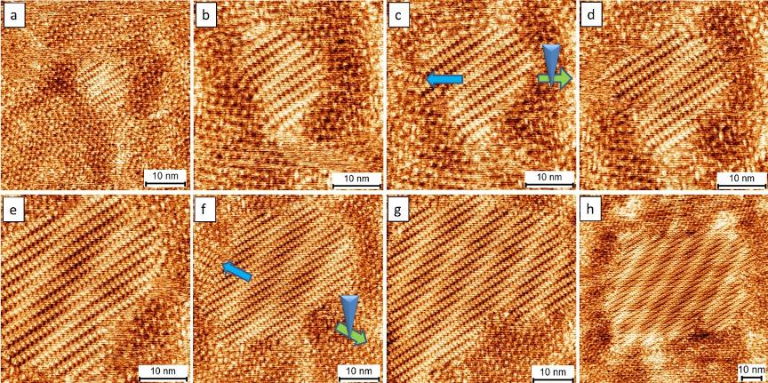 Fig 3. The consecutive images of STM revealing the re-assembly dynamics of the self-repairing in the inner structure of the close-packing.