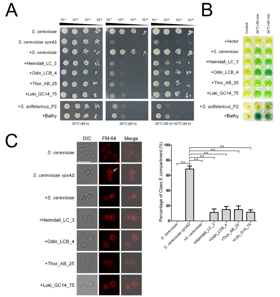 Figure. Functional complementation of Saccharomyces cerevisiae vps4 null mutants by Asgard Vps4