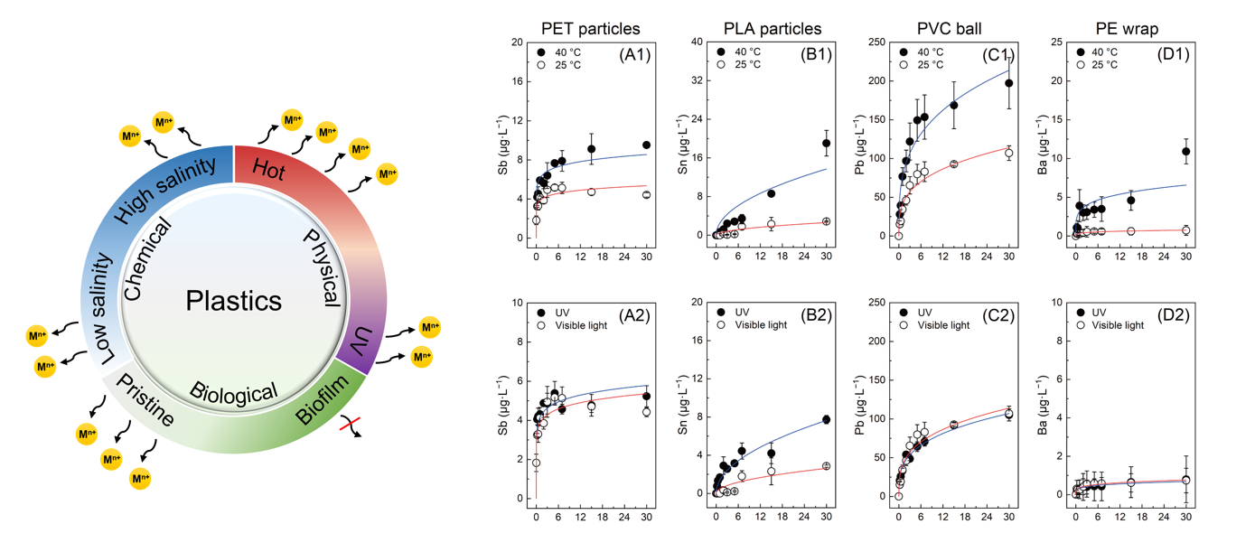 In the production of plastic products, metal additives are commonly incorporated to enhance properties such as durability, flame resistance, and anti-aging capabilities. These additives often lack chemical bonds with the polymer, making them susceptible to leaching upon exposure to the environment. The research team conducted extensive analyses on the metal concentrations of 47 common types of plastics and their raw materials. They evaluated the impacts of environmental factors (temperature, UV radiation, and salinity) as well as the physicochemical characteristics of plastics (surface roughness, specific surface area, hydrophobicity, and crystallinity) on metal leaching. The findings revealed that elevated temperatures significantly increase metal leaching, while the effects of UV radiation and salinity depend on the polymer type. Correlation analyses highlighted crystallinity as a pivotal factor governing the rate of metal leaching.