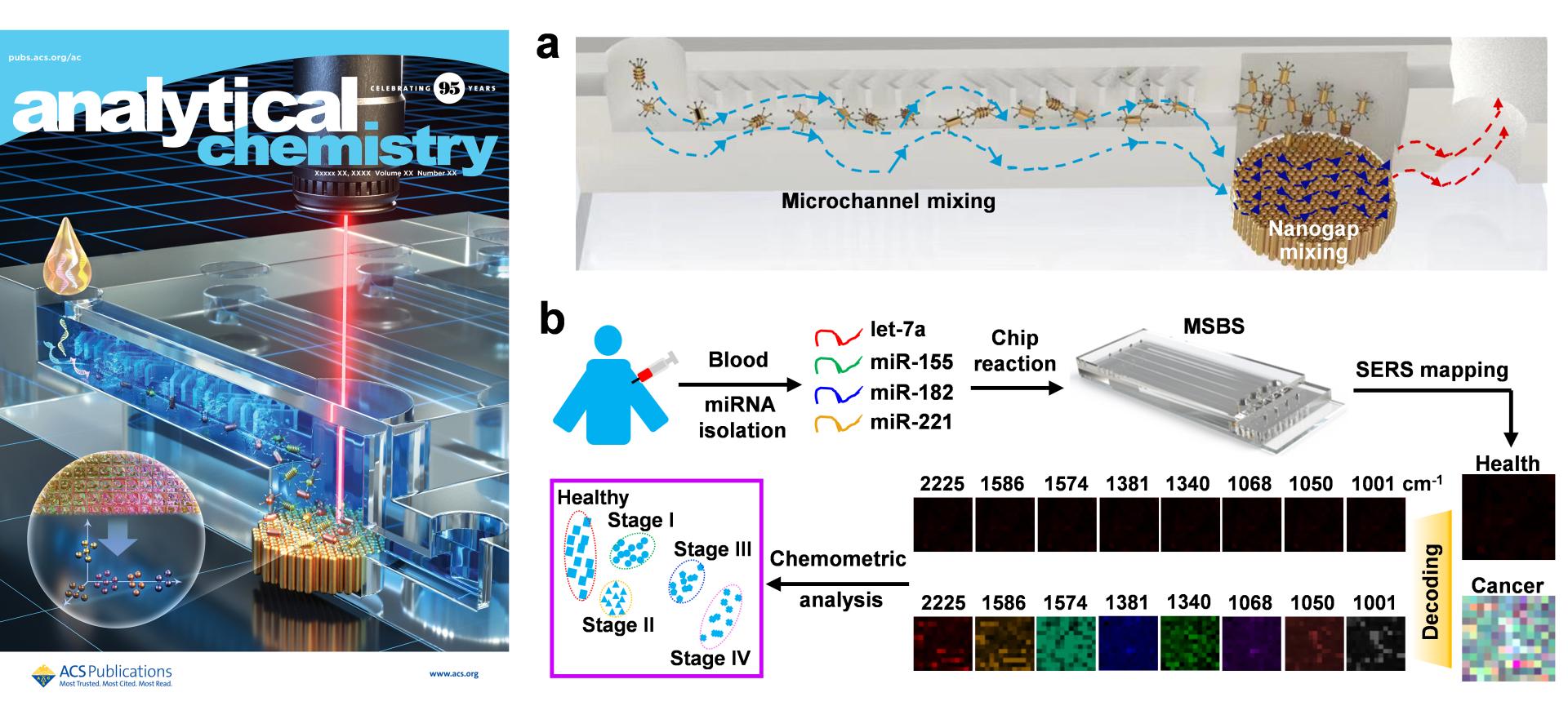 On Oct. 2, we reporteda versatile microfluidic-SERS barcoding system (MSBS) for multiplexed determination of four key miRNAs and further to discriminate cancer from healthy cohorts, to classify different stages and subtypes of cancers, and to predict the occurrence of distant metastasis for early cancer diagnosis