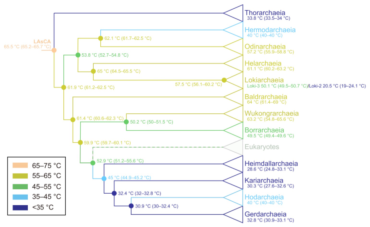 Figure 1 Evolution of optimal growth temperature in Asgard archaea