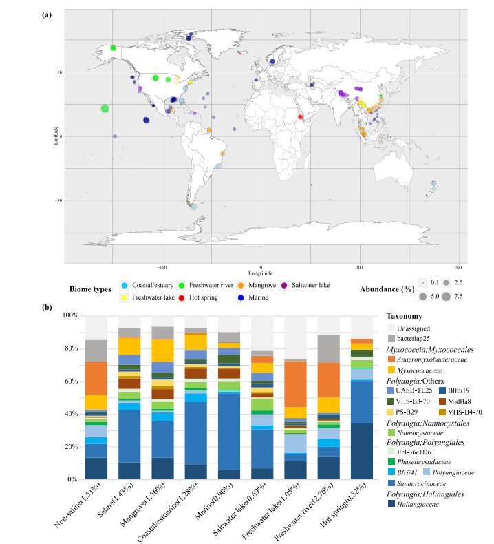 On July 13th 2024,Prof. Meng Li's team published a paper entitled "Biogeographical distribution and community assembly of Myxococcota in mangrove sediments" in the international journalEnvironmental Microbiome. The global distribution of Myxococcota, as well as their diversity and community composition in mangrove wetlands was revealed in this paper.