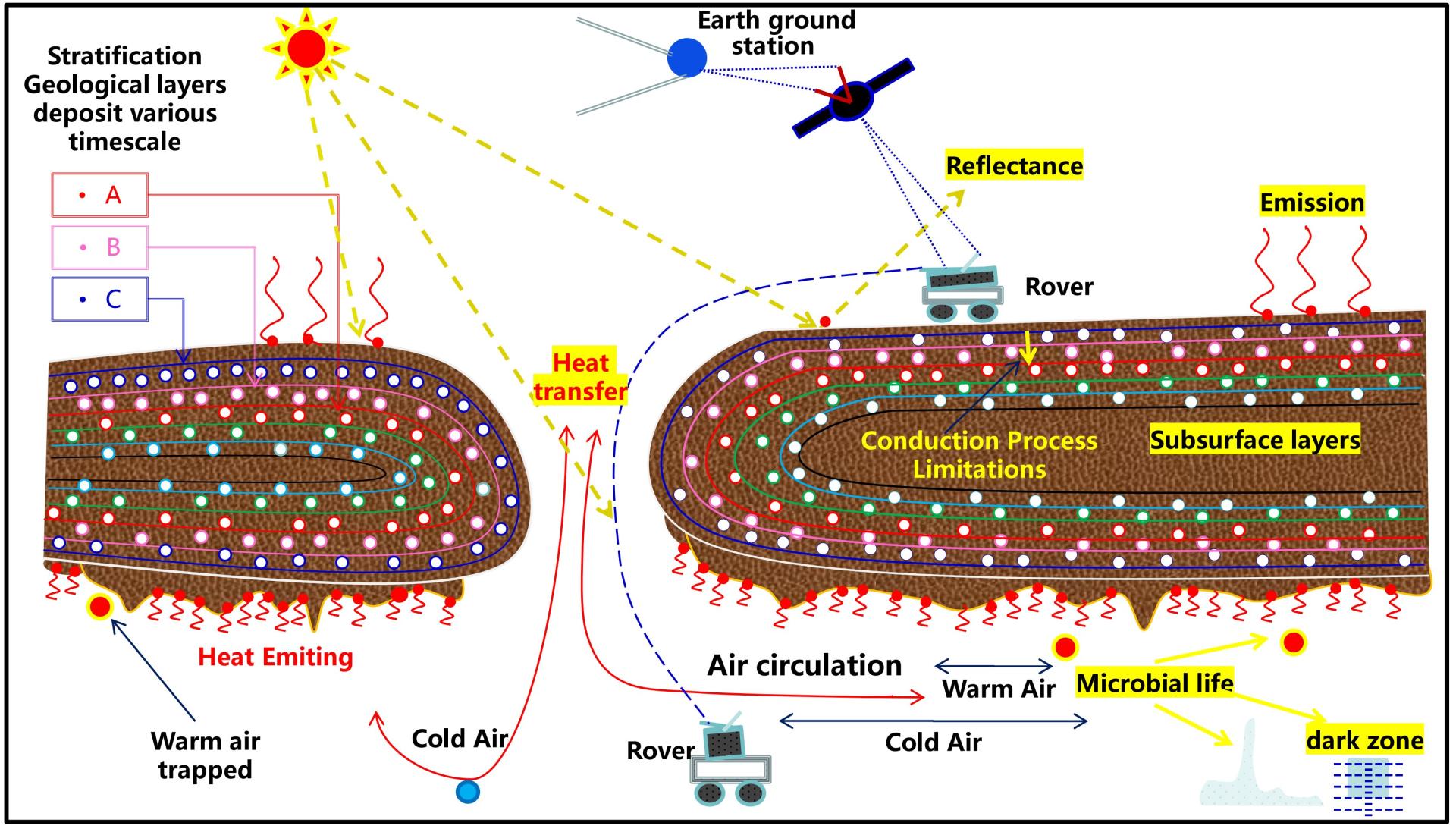 Fig. 1. Conceptual model of thermodynamic and geodynamic processes in Martian subsurface caves (Image credit: Research Team).