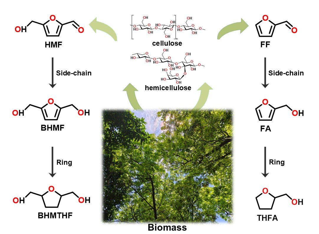 As a renewable and carbon-neutral resource, the conversion and utilization of biomass is an important approach to reduce reliance on fossil fuels and mitigate climate change. 5-Hydroxymethylfurfural (HMF) and furfural (FF), as core platform molecules derived from biomass, can be converted into high-value products such as 2,5-bis(hydroxymethyl)furan (BHMF) and tetrahydrofurfuryl alcohol (THFA), which are widely used in renewable fuels, biodegradable plastics, pharmaceutical synthesis, and other fields. However, the selective hydrogenation pathways of these compounds are complex, and how to precisely regulate the reaction direction and improve the yield of target products has long been a major challenge in the industry.