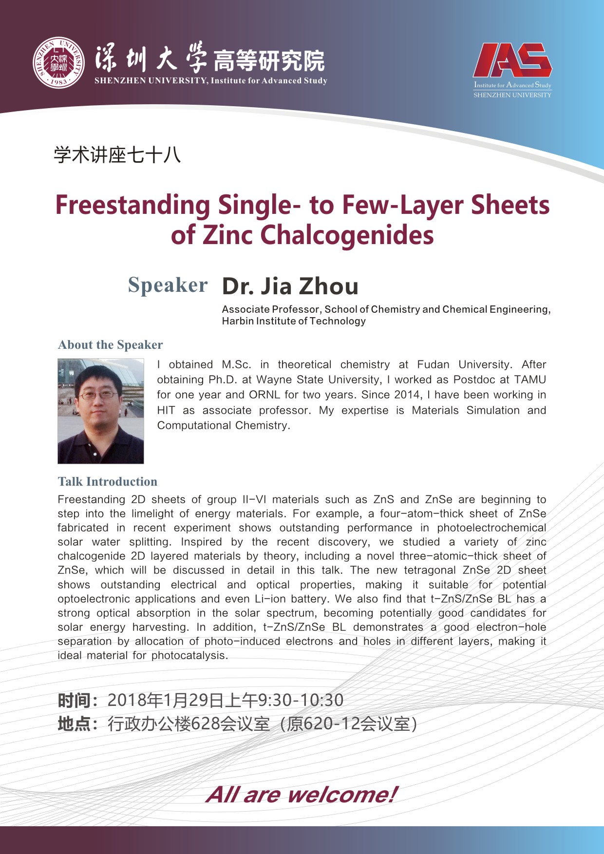 报告题目:Freestanding Single- to Few-Layer Sheets of Zinc Chalcogenides