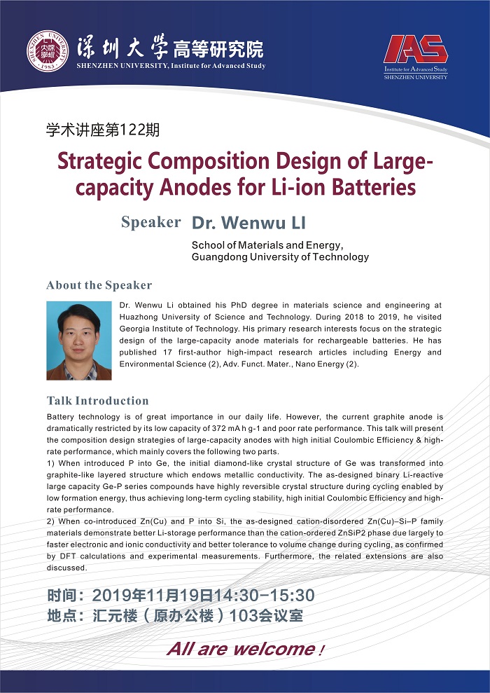 Battery technology is of great importance in our daily life. However, the current graphite anode is dramatically restricted by its low capacity of 372 mA h g-1 and poor rate performance. This talk will present the composition design strategies of large-capacity anodes with high initial Coulombic Efficiency & high-rate performance, which mainly covers the following two parts.