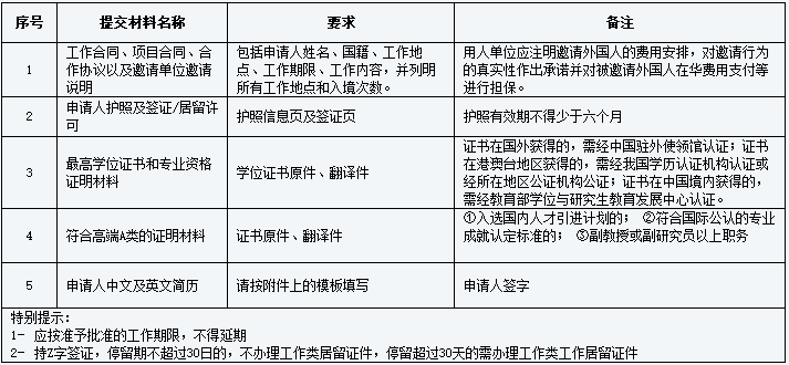 外籍教师收到《来华工作许可通知》以及学院出具的《邀请函》后,在境外申请工作签证(“Z”签证-一次入境签证,有效期30天)来华,才能在深圳办理《来华工作许可证》和《就业居留许可证》。因不同地方要求不一样,请提前咨询当地驻华使馆具体的工作签证材料。