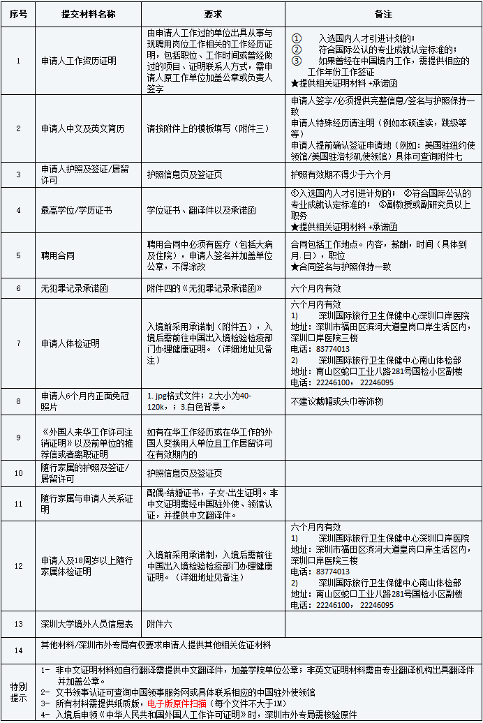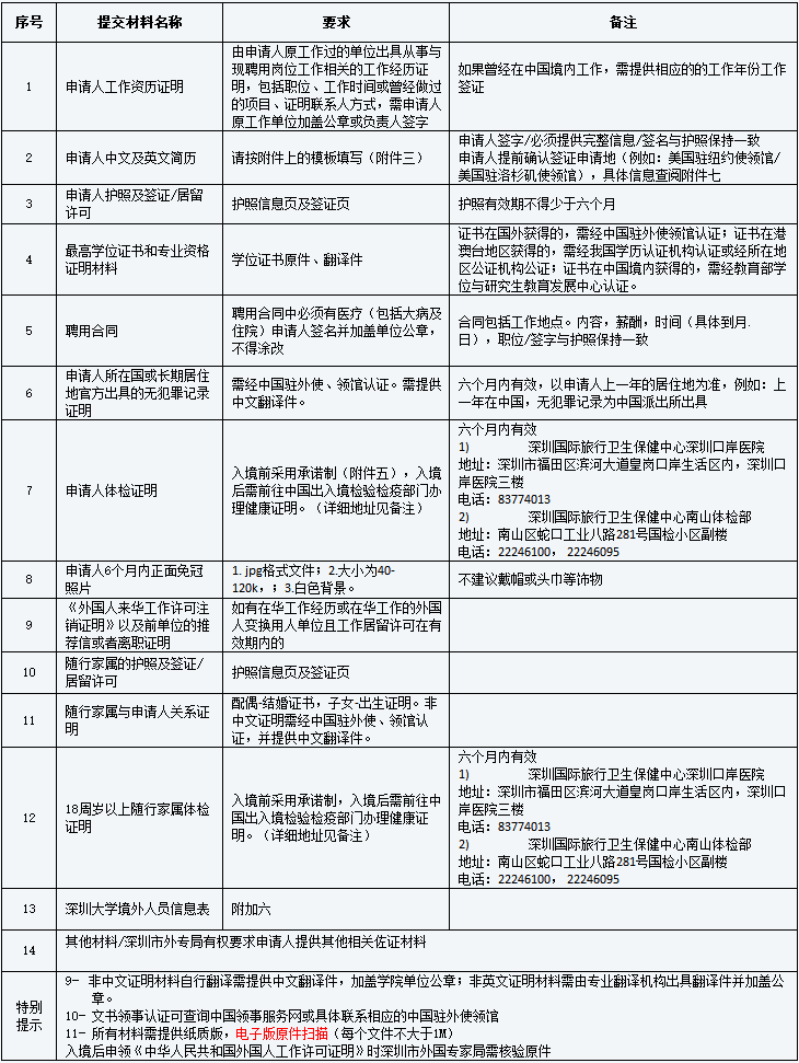 (每个文件大小不超过1M)发送至workingpermit@szu.edu.cn