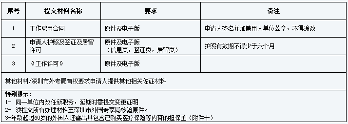 第五步: 取得《来华工作许可》后,前往深圳市公安局出入境管理处办理《就业居留许可》,需准备以下材料: