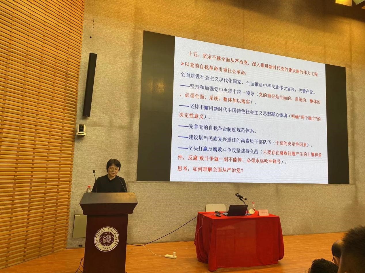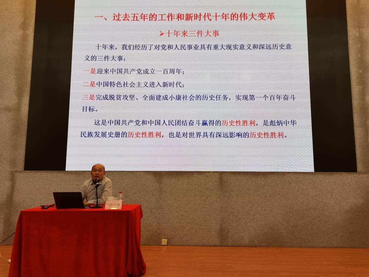 傅鹤鸣教授从党的二十大的主题、主要成果、过去五年的工作和新时代十年的伟大变革、马克思主义中国化时代化、中国式现代化、全面建设社会主义现代化国家的目标任务、坚持党的全面领导和全面从严治党、应对风险挑战等十五个方面,紧贴党的二十大报告内容,对党的二十大精神进行了全面系统深入解读。