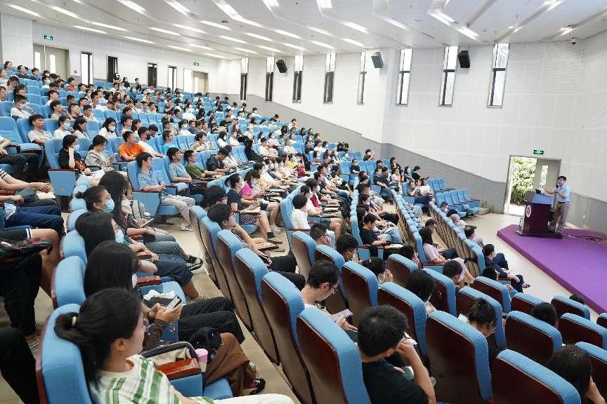 这次讲座由高等研究院、电子与信息工程学院、机电与控制工程学院、心理学院、图书馆、信息中心、艺术学部、传播学院、物理与光电工程学院计算机与软件学院、金融科技学院等11个基层党委(总支)共同举办。11个基层单位党委书记、主任、党委副书记以及党员、师生代表近400人参加讲座。