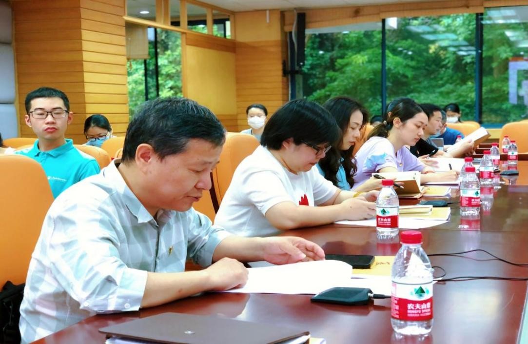 本次活动由图书馆馆长胡振宁主持。马克思主义学院党委副书记王萍、深圳南特金融科技学院党委副书记娄卓男,以及来自高等研究院、图书馆、马克思主义学院、金融科技学院的60余位党员师生代表参与了学习。