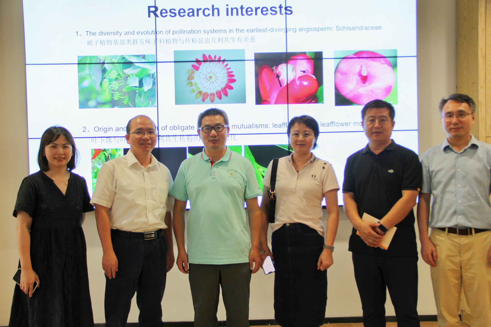 罗世孝研究员在此次讲座中主要讲述了五味子科(包括八角属、南五味子属和五味子属)是被子植物基部的分支之一,对于理解更高级类群的谱系特征的起源具有重要价值。五味子和南五味子属于雌雄异花植物。八角属曾被归类为八角科,并具有雌雄同体的花朵,但现在已明确它是五味子南五味子类群的姐妹类群,罗世孝研究员及其团队试图综合授粉生物学、分子系统发育和特征进化推断方法,以分析五味子科植物与其传粉者之间的协同进化和传粉者转移关系。其团队于野外观察发现,在亚洲,叶蝇是八角属肉被亚属(Cymbostemon)的有效且专性传粉者。肉被亚属的植株开出红色的雌雄同体花朵,由叶蝇传粉。有趣的是,肉被亚属植物在花朵凋谢后出把花持续加热作为传粉者的奖励;这表明花的加热可能是该类群的一个祖先特征,并被用于供养叶蝇幼虫在花朵凋谢后,而在八角属薄被亚属(Subgen.Illicium)中,花朵通常为白色,并由甲虫传粉。之前的研究已经揭示,五味子和南五味子中的三个物种也由吃花粉的叶蝇(Cecidomyidae)传粉,而雌性花没有提供花粉奖励(欺骗性授粉)。在此次讲座中,罗世孝研究员介绍了其研究内容:他将展示基部被子植物类群五味子科中高度多样化的种特异性授粉互利关系。研究结果表明,早期被子植物中昆虫·传粉者互利关系的多样化可能是通过利用对草食动物的原生的感官偏好达成。
