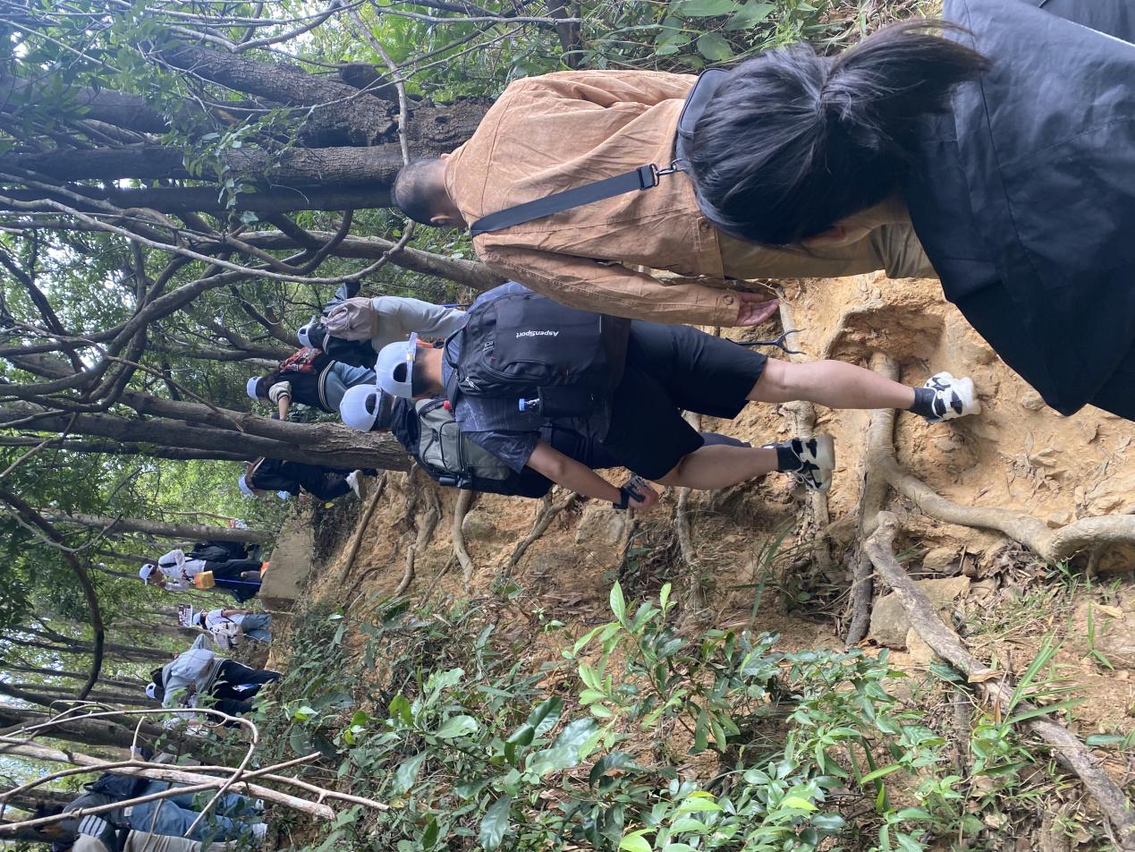 上午9点30分,大家抵达梧桐山脚,在详细的介绍活动路线及行走过程中需注意的问题后,活动正式开始。同学们以十人分组,活动的登顶往返路线为梧桐山北大门——百年古道上山——大梧桐山顶——盘山公路下山——梧桐山北大门;路线极具挑战性,往返全程约需耗8小时。沿途,同学们欣赏美景,感受大自然的美丽,遇到困难时互相鼓励,相互搀扶。一路欢声笑语,在爬山的路途中逐渐加深对同伴们的了解和印象,尽情享受着集体生活的乐趣。