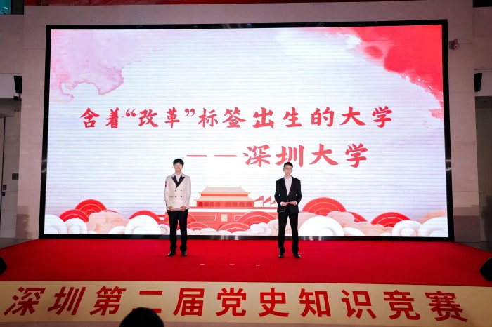 6月1日,由市委党史文献研究室、深圳广播电影电视集团联合主办的“学党史 强信念 当尖兵”深圳第二届党史知识竞赛(2024)半决赛在深圳党史馆成功举行。高等研究院学生宿博汉、王勇翔组成“高研先锋队”参加比赛。