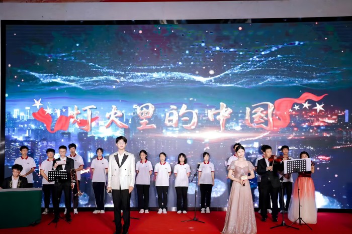 在“向党致敬”展演环节,我院20余名大一入党积极分子参与助演,采用合唱+乐器+舞蹈的表演形式,一首《灯火里的中国》歌颂了党的丰功伟绩,表达了同学们听党话、跟党走的信心和决心。