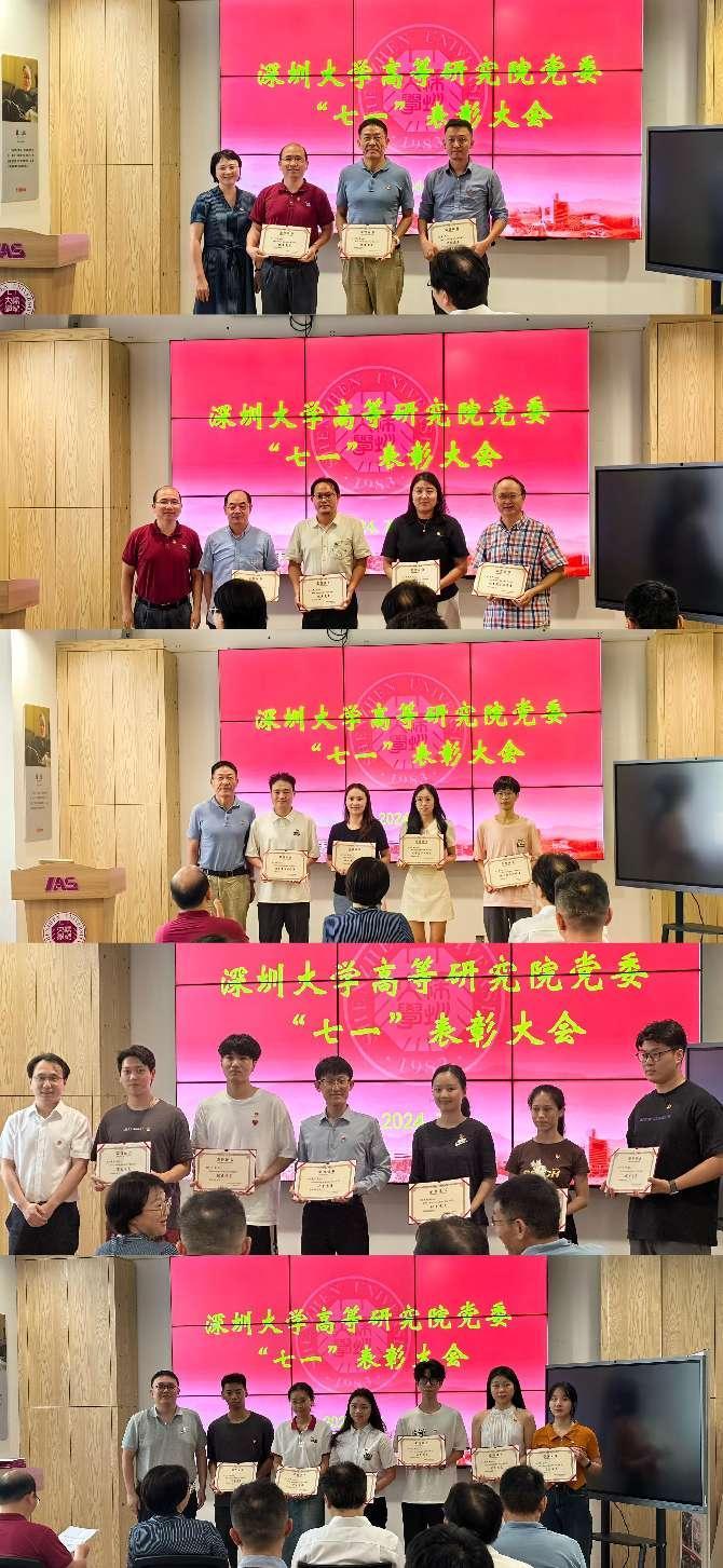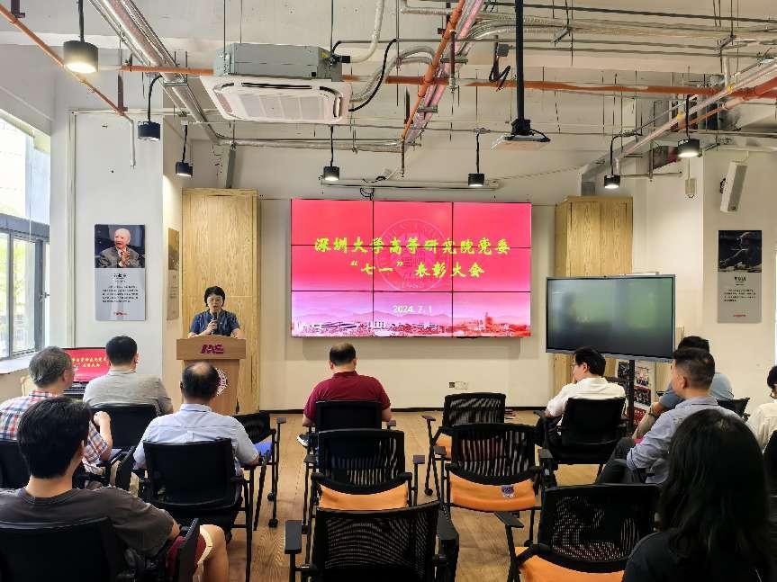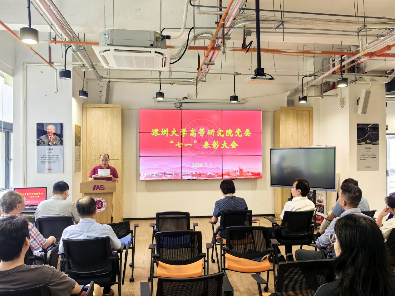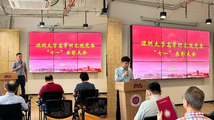大会正式开始,全体起立,奏唱中华人民共和国国歌。在全体奏唱国歌后,李猛院长宣读了《中共深圳大学高等研究院委员会关于“七一”表彰的决定》,学院领导向受表彰的党员表示祝贺并颁发证书。
