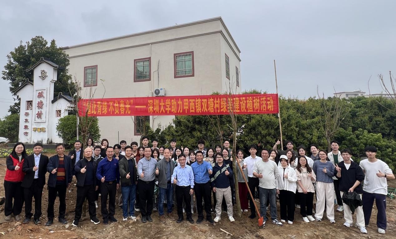 3月12日,正值第47个植树节,深圳大学高等研究院党委携手学校发展规划部、学生部、经济学院党委、化学与环境工程学院党委、机电与控制工程学院党委、电子与信息工程学院党委、计算机与软件学院党委、金融科技学院党委等单位师生党员代表赴陆丰市甲西镇,与镇村干部、村民代表共同种植“深圳大学先锋林”。