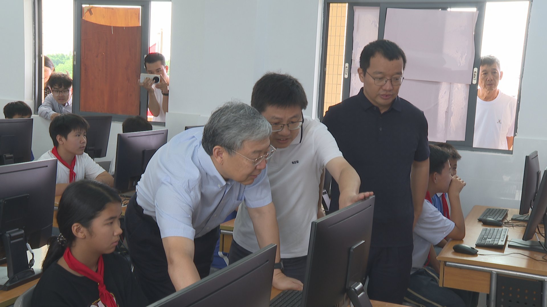 5月28日,深圳大学党委书记李清泉在后湖小学出席电脑捐赠仪式,实地考察通过技术帮扶推动乡村教育数字化的实践。
