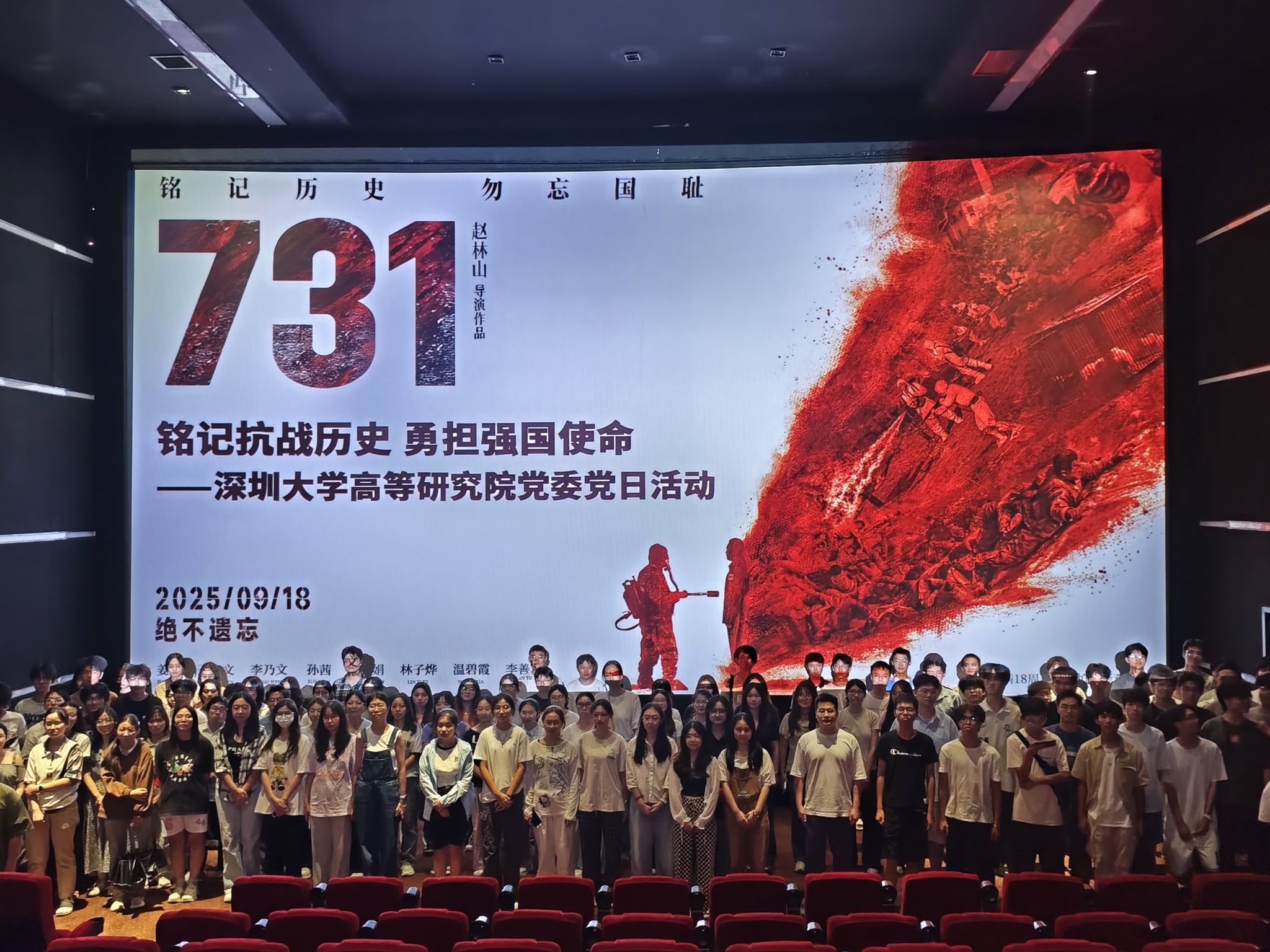 为铭记世界反法西斯战争的伟大胜利,弘扬不屈不挠的民族精神,进一步激发全院师生的爱国热情和强国担当。9月26日,高等研究院党委组织师生共160人集中观看了爱国主义教育影片《731》。