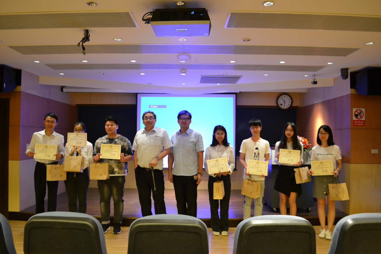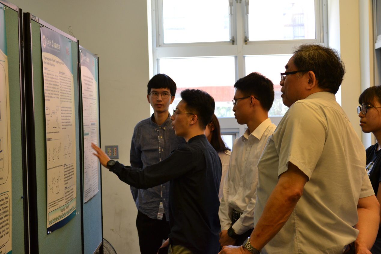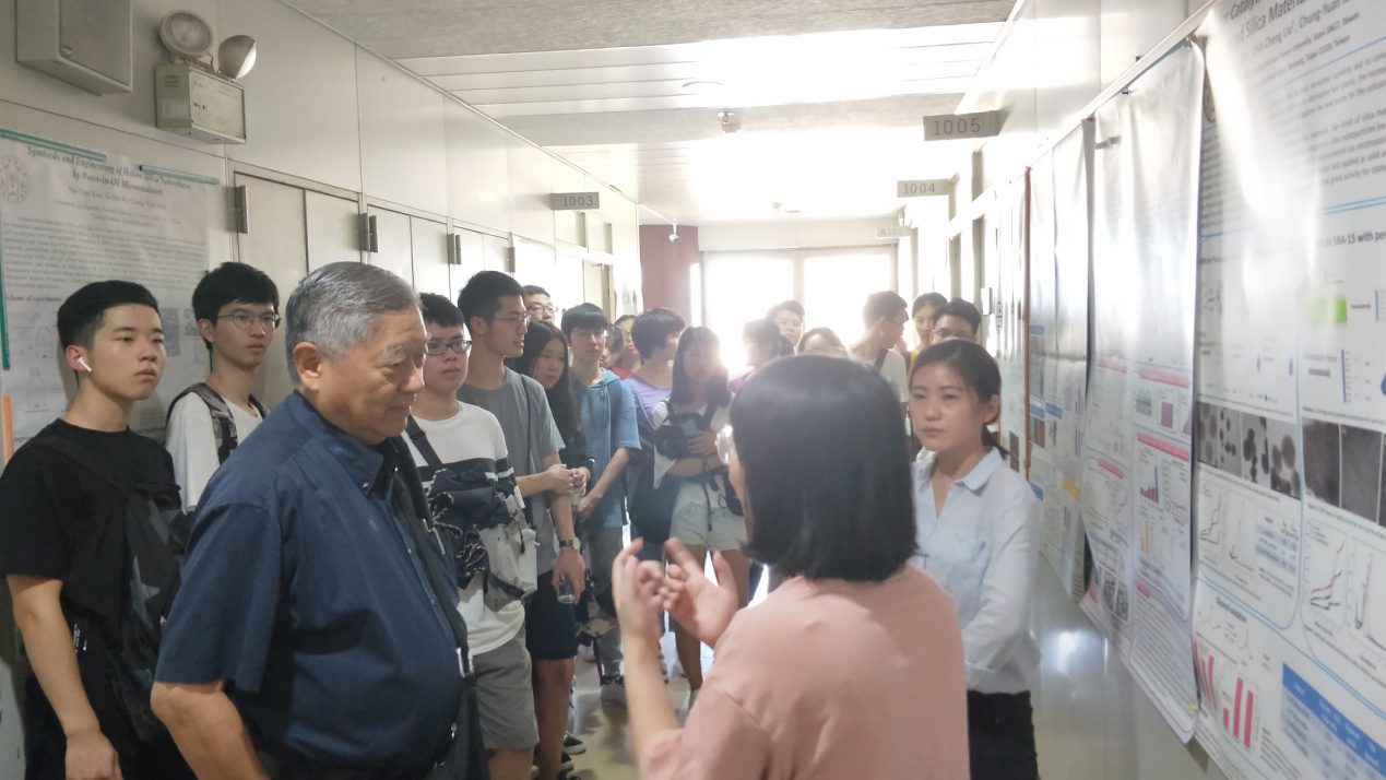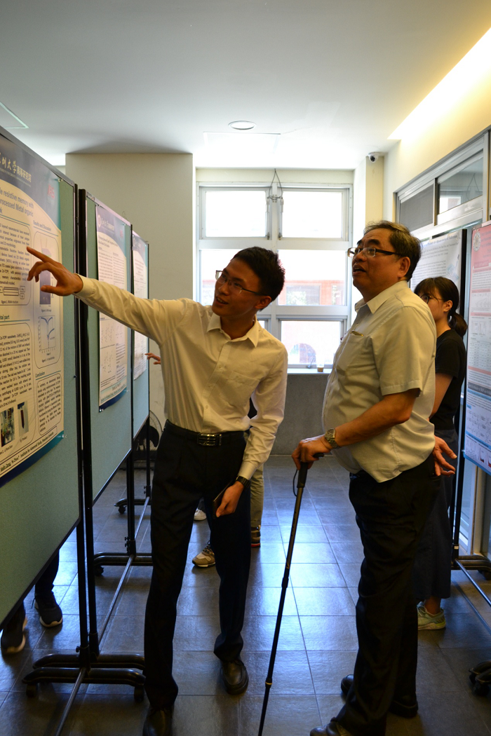 随后,交流团在台湾大学参加学术交流研讨会,来自深圳大学高等研究院的韩志超教授、李昇隆教授、周晔教授、许杉杉教授、韦阳博士及台湾大学化学系的牟中原院士、周必泰教授、詹益慈教授、周尚威教授、陈浩铭教授、江伟宏教授、黄庆怡教授出席研讨会,分享学术上的科研成果并洽谈双方实验室合作事宜。会上,双方教授在各自的专业领域进行了深入的交流,交流团学生也以海报的形式向台湾师生们口头汇报了课题组的研究方向及研究进展。经过交流团学生的精彩介绍及台湾大学评定委员会的专业评定,曾柯霖、李嘉燕、温婕琪三位同学获得了“2018深圳大学高等研究院与台湾大学化学系学术交流访问”壁报展三等奖,王嘉仪、徐韧哲两位同学获得了二等奖,袁聆潇、余诗晨同学获得了一等奖。高研学子在海报中展现出的专业学术素养以及高水平的创造力,得到台湾大学师生的一致赞赏。