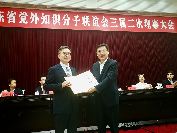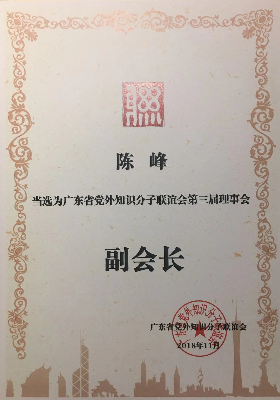 11月6日下午,广东省党外知识分子联谊会三届二次理事大会在广州举行。大会上选举深圳大学高等研究院院长陈峰教授为第三届广东省知联会副会长。