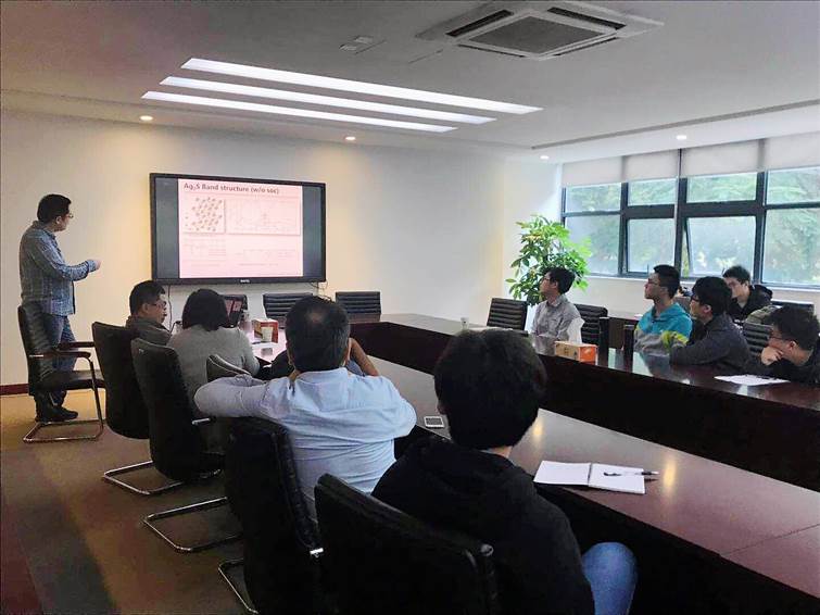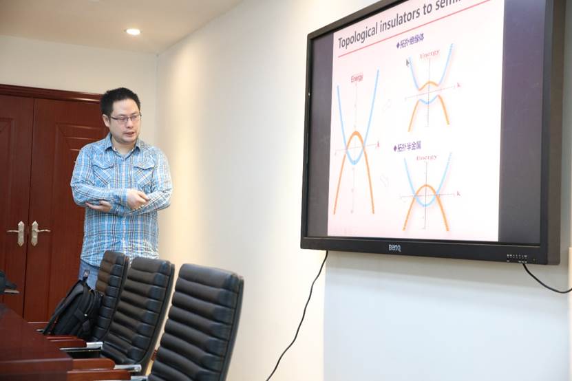 应高等研究院李武研究员的邀请,武汉大学物理科学与技术学院余睿教授做客深圳大学高等研究院知名学者讲学计划第七期,在深圳大学办公楼103会议室作了题为“拓扑态的材料设计”的学术报告。高等研究院研究员李武、曹艳、李晓光、蔡兴科携博后、学生到场聆听。
