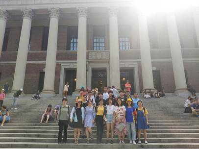 (同学们参访哈佛大学并在哈佛大学图书馆前合影)