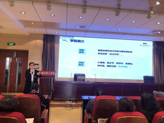 (高等研究院副院长韦阳博士向常州高级中学的师生介绍深圳大学高等研究院)