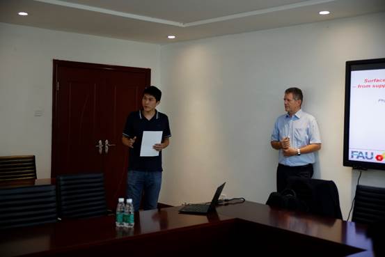 上午10:00,Steinruec教授在深圳大学汇元楼103会议室做了题为“Surface chemistry of complex molecularsystems – from supported graphene to energy storage molecules”的报告。该报告主要介绍了应用光电子能谱研究表面吸附,石墨烯担载的金属纳米颗粒以及能量存储分子等研究现状,展示了表面科学领域的最新进展。报告会后,Steinruec教授同在场师生积极互动,耐心细致的答疑解惑,进行了更加深入的探讨,赢得了现场师生的一致好评。