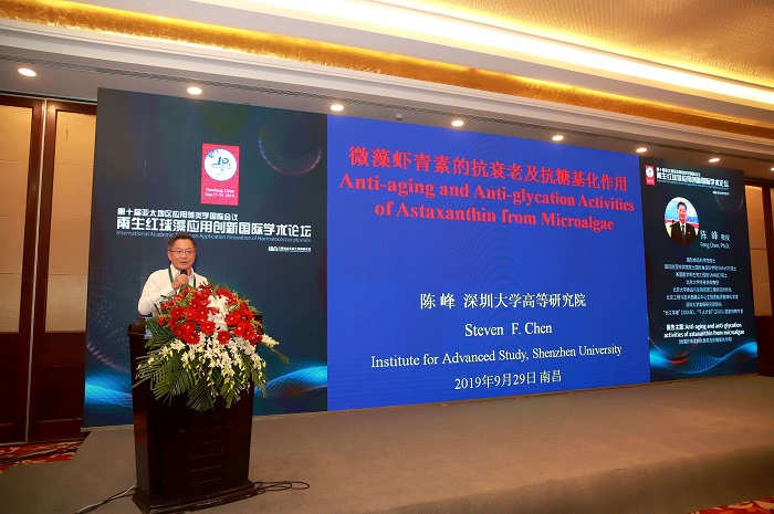 近日,由南昌大学及亚太地区应用藻类学会联合主办的第十届亚太地区应用藻类学国际会议在南昌顺利召开,该会议吸引了400多名来自国内、欧美等世界各地藻类应用研究领域的中外科学家出席。深圳大学高等研究院院长、国际欧亚科学院院士陈峰教授应邀在大会上作题为《Microalgae as excellent sources of nutraceuticals – safety and technological considerations》的主旨发言,并在分论坛上作《微藻虾青素的抗衰老及抗糖基化作用》的报告。