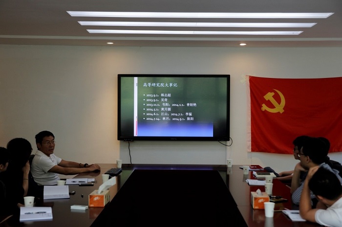 2019年11月5日,高等研究院党支部在汇元楼103会议室举行了“不忘初心、牢记使命”主题教育第六次集中学习活动。会议由高等研究院党支部书记韦阳同志主持,全体党员参加会议。