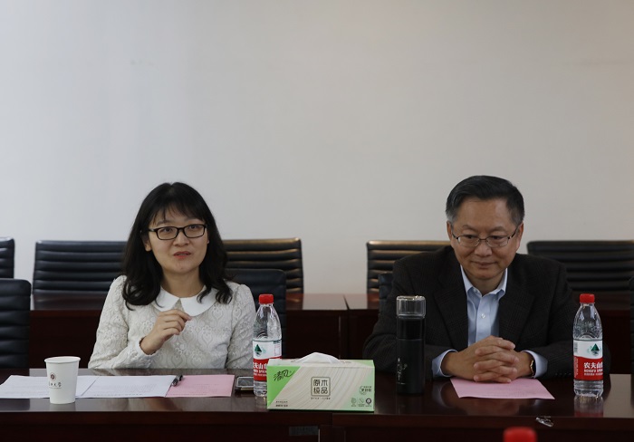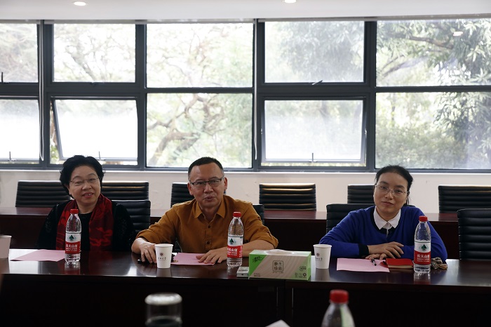 (图:韦阳副院长介绍学院心理辅导站建设情况)