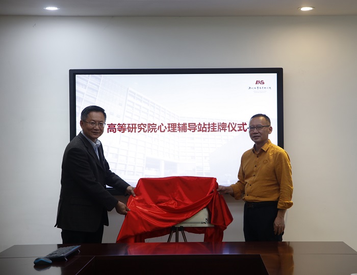 2019年12月23日下午15:30,深圳大学高等研究院在汇元楼103室举行心理辅导站揭牌仪式,深圳大学学生部副部长马文泽、心理辅导中心主任周红、高等研究院院长陈峰、副院长韦阳等多位领导、老师应邀出席,本次仪式由韦阳副院长主持。