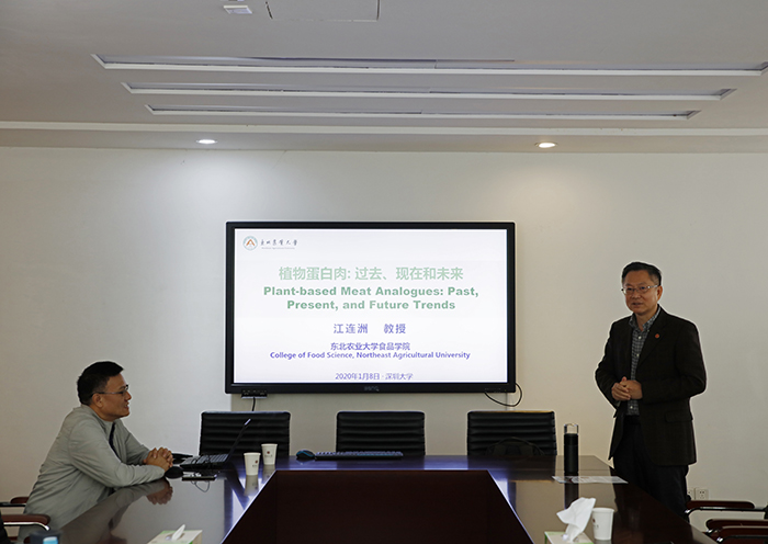 2020年1月8日,应深圳大学高等研究院陈天鹏博士的邀请,东北农业大学食品学院院长江连洲教授到高等研究院访问并开展学术交流。本场学术讲座由高等研究院院长陈峰教授主持,众多师生参与并聆听了该讲座。