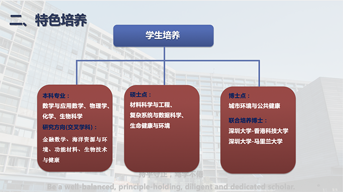提起深圳大学的高等研究院,李主任用两句话来形容它,一是“院士领衔的师资力量”,二是“采用博士标准培养本科生”。为了让大家更加了解高等研究院,他特意邀请韦阳副院长为大家做详细介绍。
