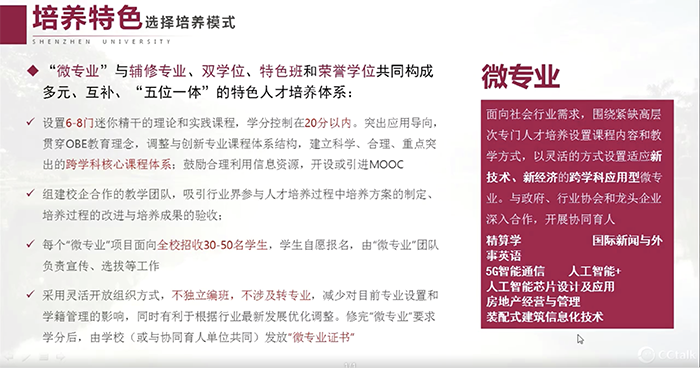 直播开始后,深圳大学招生办公室的李智军主任将学校的历史故事、校园生活、培养特色、往年的招生分数线、最新的招生政策娓娓道来。他强调深大是一个开放多元的学校,学生不仅拥有自由的辅修、双学位和转专业机会,还可以通过二次选拔的方式进入全校40个别具特色的创新实验班。此外,学校开设微专业、试行荣誉学士学位制度、注重创新创业和人文熏陶,打造多元互补、五位一体的新时代特色人才培养体系。深圳大学创业园目前已成功孵化超过300个企业,部分企业市值过亿。最后,李主任总结了选择深圳大学的四个理由:它在一座全世界最具创新活力的城市里,拥有一个综合性大学的育人环境,具备国际化学习和生活环境,还有二十万留深校友的陪伴与支持。