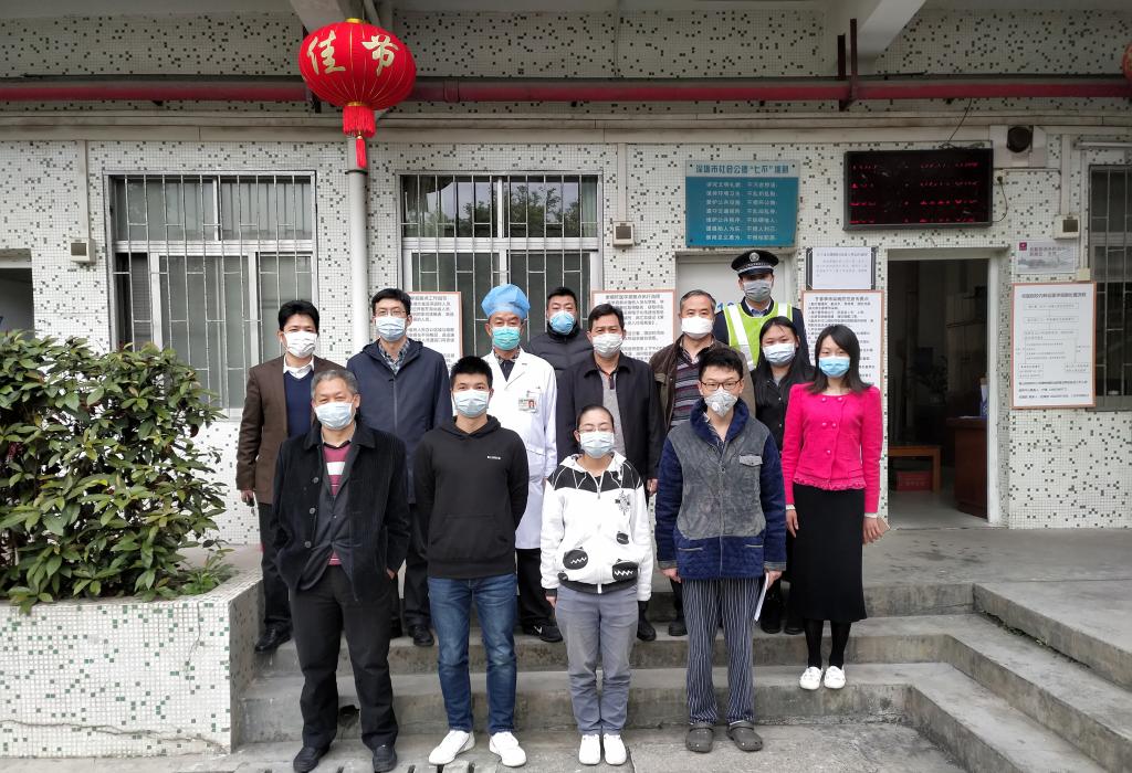 (图:蒋智恒同学(前排最右)搬离隔离区时与学校相关部门老师合影)