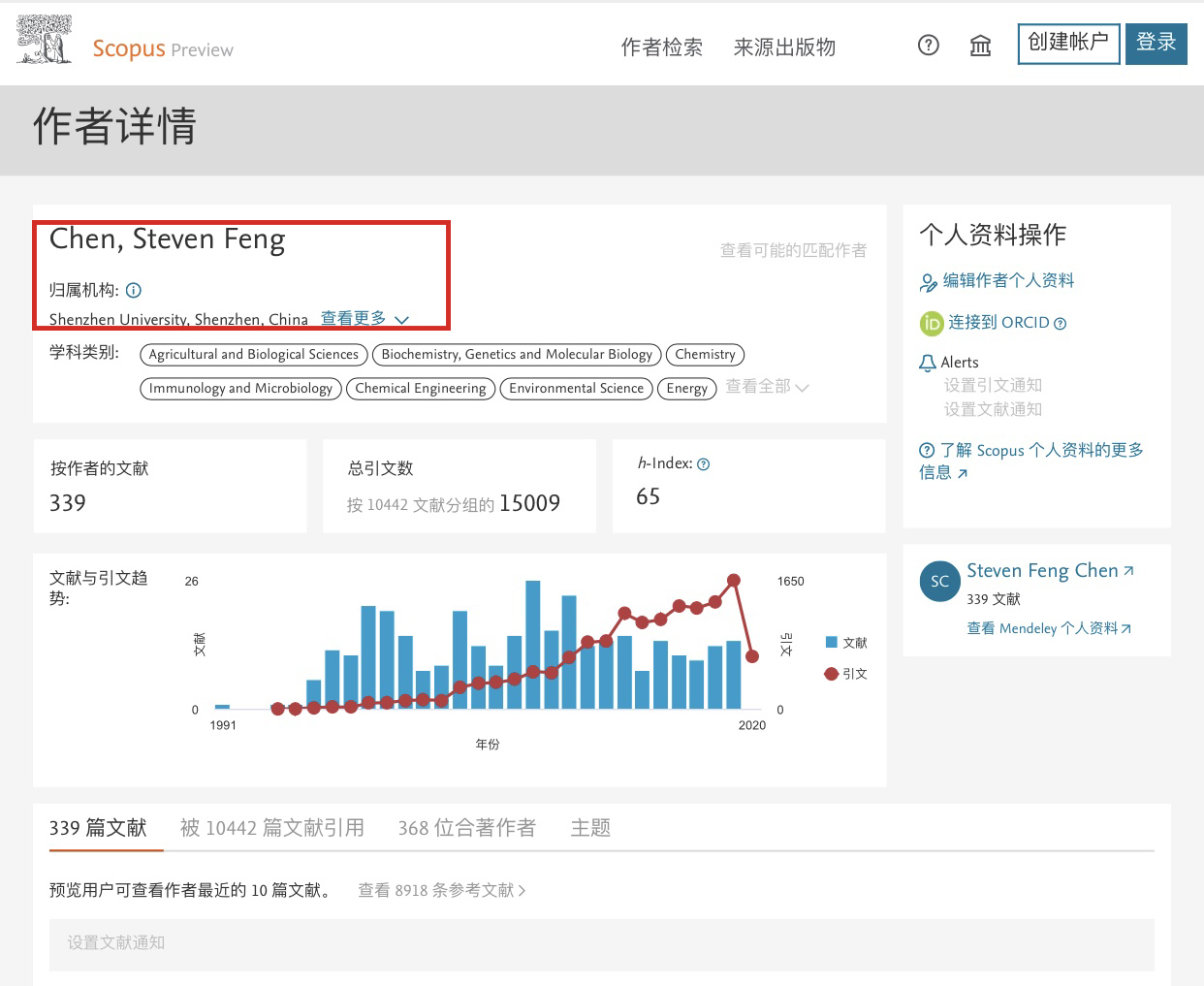 5月7日,爱思唯尔(Elsevier)正式发布“2019年中国高被引学者”榜单(Most Cited Chinese Researchers),本次国内共有2163位学者入选,深圳大学共有六位学者入选,分别是谢和平、王熙照、黄继武、沈琳琳、陈峰、贺劲松(下图数据显示陈峰所属单位是深圳大学,但仍被误归到原来单位北京大学)。其中,高等研究院院长陈峰教授入选“农业与生物科学”学科榜单,贺劲松教授入选“数学”学科榜单。而这也是陈峰教授继入选2017年全球高被引科学家榜单和2018中国高被引学者后,连续第三年获此类殊荣。