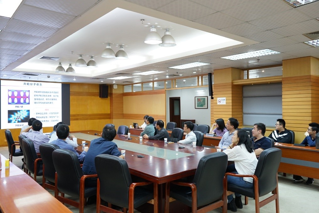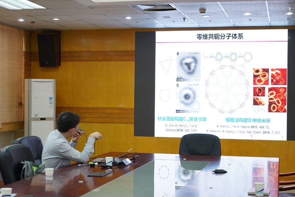 上午10:00,刘培念教授在汇典楼二楼会议室做了题为“表面合成化学”的报告。基于溶液中有机合成反应的相关理论,围绕“表面合成反应中官能团的高选择性活化和定向转化”核心问题,介绍多种表面偶联反应的新策略,并介绍利用扫描探针显微技术对反应机理、低维共轭分子体系的功能与性质进行的系统研究。