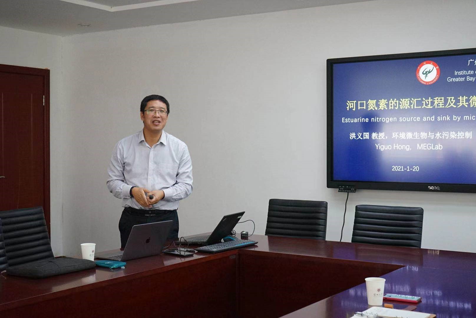 下午14:00, 洪义国教授在汇元楼103会议室进行了题为“河口氮素的源汇过程及微生物调控机制”的学术报告。洪义国教授主要围绕珠江流域及近海中微生物驱动的氮循环过程及生态环境效应研究,分别报告了相关环境的微生物群落形成及其环境互作的机制、微生物驱动碳氮循环的机制及元素循环之间的耦合机制、微生物对氮循环的调节机制以及流域及近海生物地球化学循环过程对人类活动的响应。通过生命科学、地球科学、化学科学、信息科学等多学科的深入研究及深度交叉,结合新技术手段及平台的开发与利用,系统揭示珠江河口微生物驱动氮元素生物地球化学循环的机制,完善生命与地球环境相互作用及协同演化的理论。同时,上述研究也为保护水圈生态服务功能、应对全球气候变化、保障地球生态环境安全等提供科学依据。