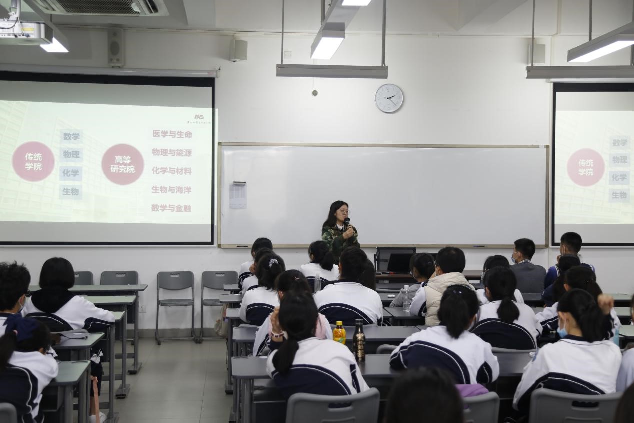 首先,韦阳副院长向来访师生表示热烈欢迎,并详细地介绍了深圳大学及高等研究院的办学历程、办学目标、发展趋势、培养特色、国际交流、师资力量、招生政策以及毕业去向等情况。她表示,深圳大学高等研究院“理工创新实验班”以高精尖创新型人才为培养目标,诚挚地欢迎广大莘莘学子报考。